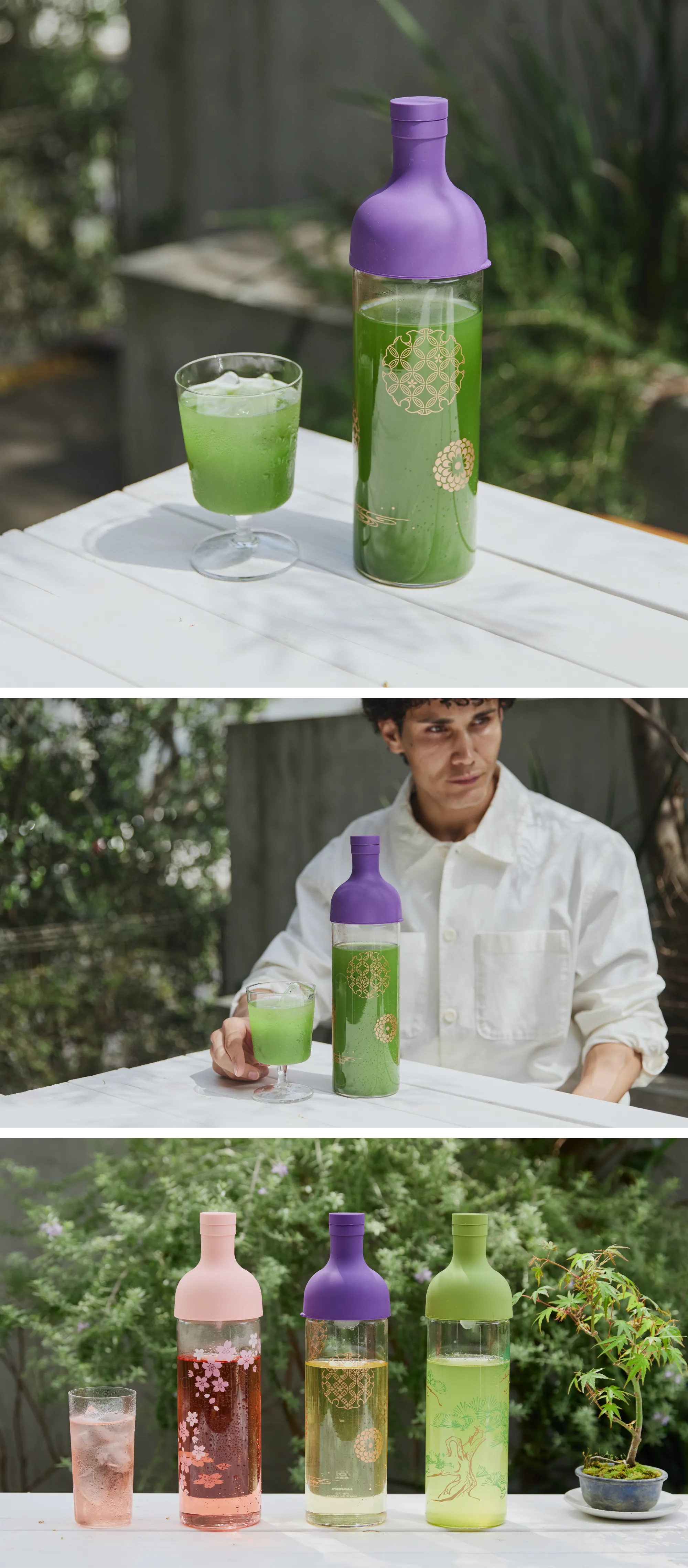 透明感のあるボトルに繊細な柄が浮かび上がり、テーブルに置くだけで空間に優雅な華を添えます。