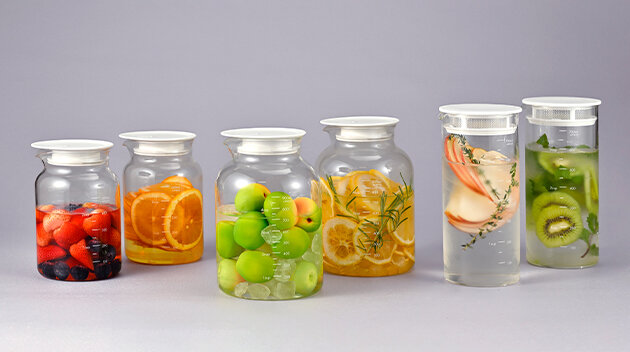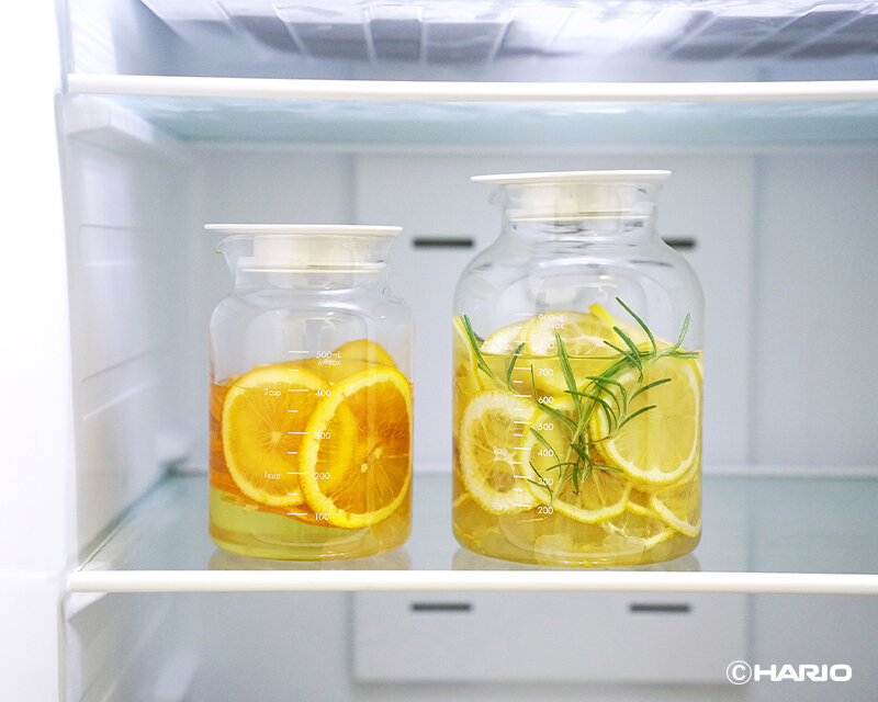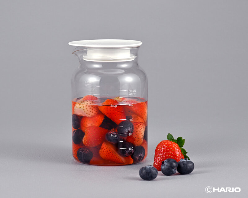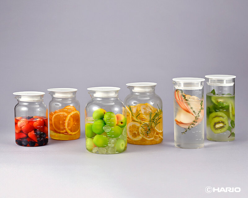 フルーツシロップの他、ビネガードリンク、水出しティー・コーヒーバッグでの抽出、出汁づくりや調味料入れなど幅広く使えるポットです。